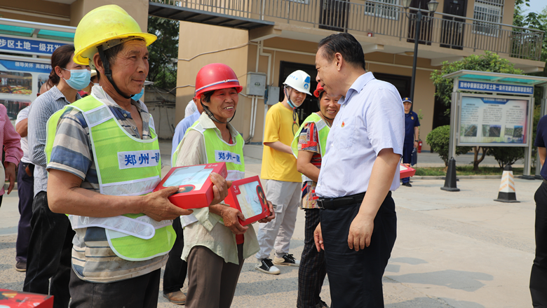 為切實做好防暑降溫工作,給項目工友送去清涼,鄭州市總工會精心準備了夏季防暑降溫用品和礦泉水。市總工會、消防救援支隊領(lǐng)導(dǎo)為一線職工送去防暑降溫用品,慰問看望一線職工,將工會組織的關(guān)懷送到職工心坎上。
