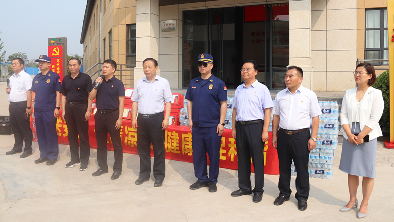 進入夏季以來,持續(xù)出現(xiàn)的高溫天氣,給奮戰(zhàn)在建設(shè)一線的施工人員帶來嚴峻考驗,廣大職工不畏酷暑,堅守崗位,辛勤付出。為做好廣大職工的防暑降溫工作,切實保護職工身體健康,6月11日,鄭州市總工會、鄭州市消防救援支隊到鄭州地產(chǎn)集團西流湖公司中原新區(qū)土地一級開發(fā)項目指揮部開展主題為“送清涼、送安全、送健康、促和諧”的夏季送清涼活動。鄭州市一級巡視員、市總工會黨組書記、主席趙新中,市消防救援支隊副支隊長、滅火救援指揮部部長李隆,市總工會副主席宋少丹,鄭州地產(chǎn)集團有限公司監(jiān)事會主席、工會主席李靜波及西流湖公司黨支部書記、董事長、總經(jīng)理吉獻亮等領(lǐng)導(dǎo)出席活動?;顒佑晌髁骱靖笨偨?jīng)理昌磊主持。