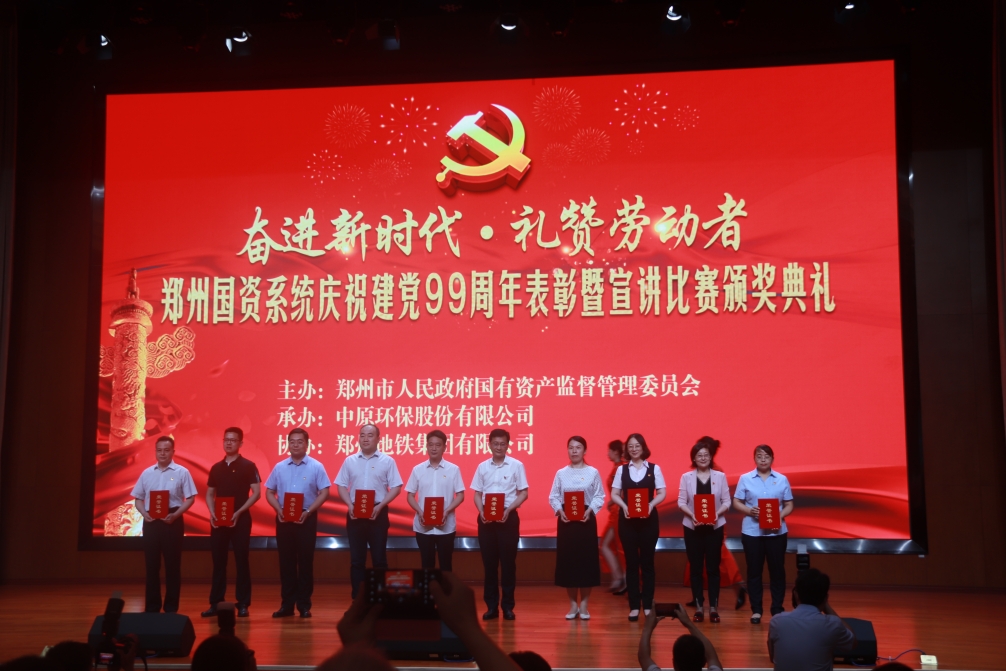 為慶祝中國共產(chǎn)黨成立99周年,重溫黨的光輝歷程,傳承黨的優(yōu)良傳統(tǒng),6月30日下午,鄭州市國資委舉行“奮進(jìn)新時(shí)代·禮贊勞動(dòng)者”——鄭州國資系統(tǒng)慶祝建黨99周年表彰暨宣講比賽頒獎(jiǎng)典禮,集團(tuán)黨委書記、董事長萬永生,監(jiān)事會(huì)主席李靜波,以及集團(tuán)優(yōu)秀基層黨組織、優(yōu)秀共產(chǎn)黨員、優(yōu)秀基層代表、獲獎(jiǎng)節(jié)目代表等共計(jì)20余人參加此次頒獎(jiǎng)典禮。