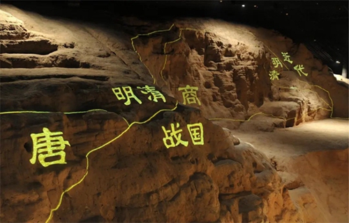 第二展廳部分場景復(fù)原運(yùn)用了三維立體掃描、建模和 3D 打印的新技術(shù),展示鄭州商都發(fā)現(xiàn)的重要遺跡,如紫荊山路南城垣斷面展示,夕陽樓人骨祭祀坑、向陽回族食品廠青銅器窖藏坑展示等。三維立體掃描和3D打印的技術(shù)運(yùn)用,充分還原遺跡和考古發(fā)掘現(xiàn)場,最大限度保護(hù)文物和文化遺產(chǎn),新技術(shù)的運(yùn)用也減少了展廳施工的難度,節(jié)省資源和成本,視覺感官上無差別的遺跡展示,帶給觀眾親臨現(xiàn)場的真實感和體驗感。