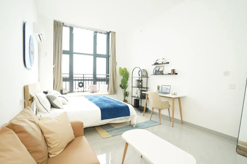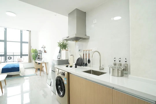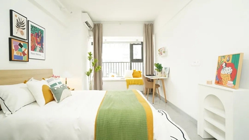 項目配備智能門鎖、獨立衛(wèi)浴、床、衣柜、書桌、洗衣機、空調、冰箱、抽煙機、晾衣架等,公寓精裝修設計,拎包入住,智能化管理,商業(yè)、教育配套齊全,滿足入住人群生活、社交需求。