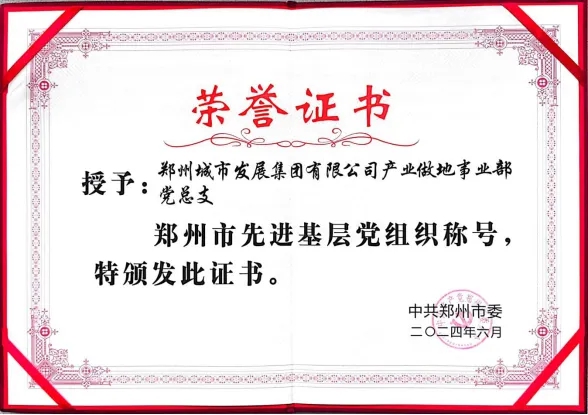 為慶祝中國共產(chǎn)黨成立103周年,6月27日,鄭州市“兩優(yōu)一先”表彰大會隆重舉行,大會對先進集體和個人進行了表彰。鄭州城發(fā)集團產(chǎn)業(yè)做地事業(yè)部黨總支被授予“鄭州市先進基層黨組織”榮譽稱號,事業(yè)部黨總支書記吉獻亮參加表彰大會。