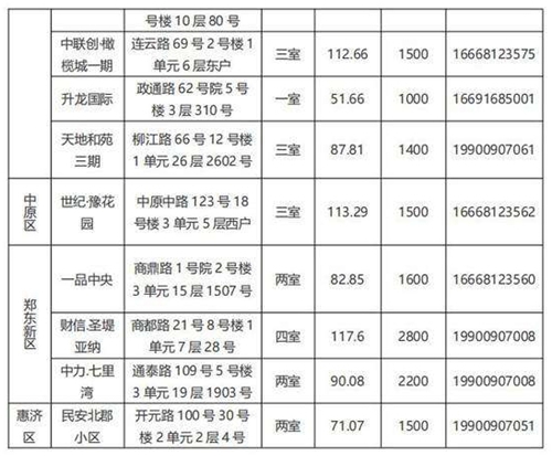 本批次配租房源共計32套,其中金水區(qū)12套、管城區(qū)7套、二七區(qū)8套、中原區(qū)1套、鄭東新區(qū)3套、惠濟(jì)區(qū)1套。水電費(fèi)均為民用水電標(biāo)準(zhǔn),物業(yè)費(fèi)為各小區(qū)物業(yè)收費(fèi)標(biāo)準(zhǔn),房源精裝修交付,周邊配套設(shè)施齊全,配備家具家電,拎包入住,后續(xù)房源將根據(jù)裝修進(jìn)度情況陸續(xù)配租。