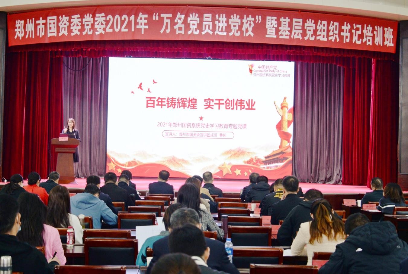 10月19日,鄭州市國資委黨委舉行2021年“萬名黨員進黨校”暨基層黨組織書記培訓活動,鄭州地產(chǎn)集團西流湖公司黨支部曹珂同志作為市國資委宣講團成員,向市國資委黨委市管企業(yè)優(yōu)秀黨支部書記、優(yōu)秀共產(chǎn)黨員130余人進行了以《百年鑄輝煌 實干創(chuàng)偉業(yè)》為主題的黨課宣講。