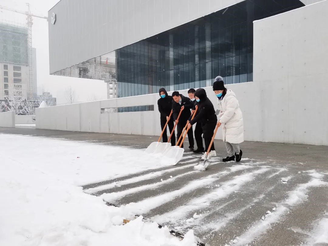 全力以赴,分秒必爭。4日下午突如其來的降雪,給第二天的檢測工作帶來了極大困難。面對艱巨的任務(wù),為切實做好全員核酸檢測準(zhǔn)備工作,保障參檢群眾生命財產(chǎn)安全。鄭地發(fā)展公司作為國企,危急關(guān)頭彰顯國企擔(dān)當(dāng),第一時間作出動員號召,由黨員同志帶頭,迅速組建了一支30余人的志愿服務(wù)隊,連夜開始了場地清理布置工作,調(diào)配防疫物資、準(zhǔn)備消毒液、架設(shè)引導(dǎo)牌、拉設(shè)警戒線、張貼掃碼紙、擺放檢測臺,對商務(wù)服務(wù)中心進(jìn)行全面消殺,同時組織新加入的志愿者開展模擬演練,幫助大家快速熟悉服務(wù)工作,保證各個環(huán)節(jié)有條不紊。5日清晨,志愿者們早早來到商務(wù)服務(wù)中心現(xiàn)場清理積雪,僅僅半個小時,園區(qū)便露出了干凈整潔的路面,為迎接檢測做好了充分準(zhǔn)備。